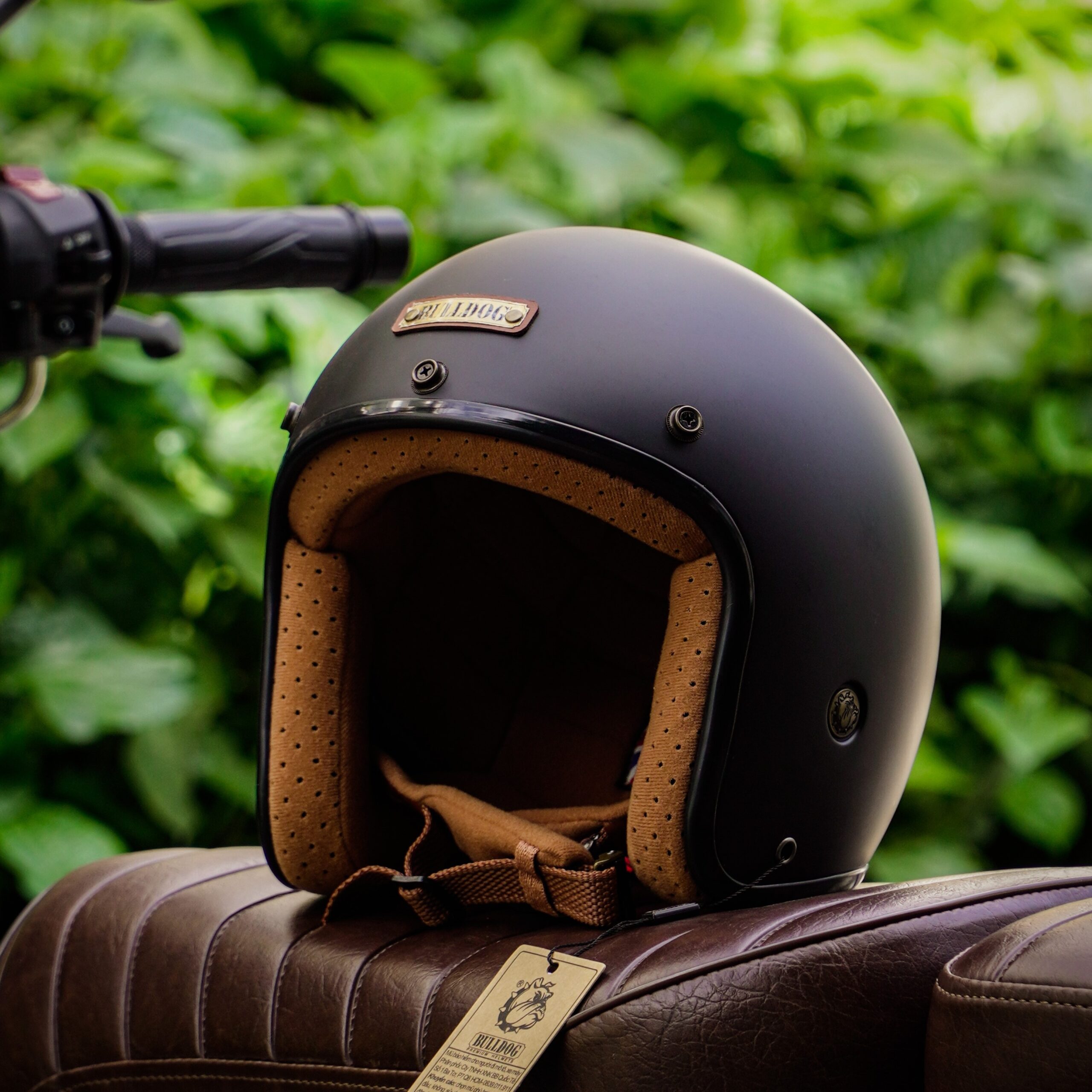 The Bulldog Perro 4U helmet is a lightweight, 3/4-style vintage-inspired helmet from the Bulldog brand. Key features include a durable ABS plastic shell, a comfortable and removable antibacterial lining, a secure microlock buckle, and an added anti-theft lock hole for security. Designed for comfort and safety, the helmet is lightweight at around 850g and meets Vietnamese QCVN safety standards.